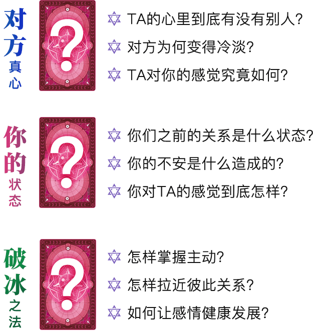 内容有当前感情状态、原因、你内心的真实想法,同时也有对应的化解方法,个人觉得非常实用准确,推荐!